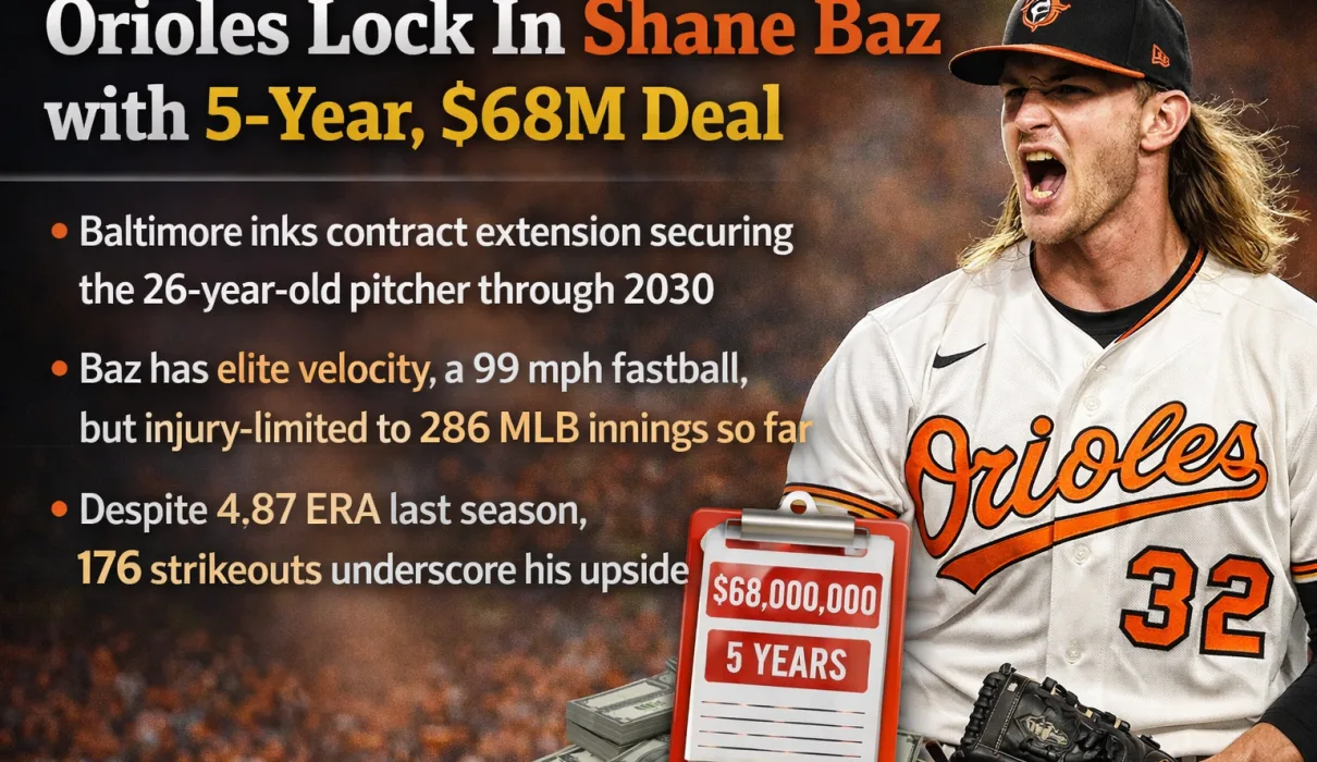 The Shane Baz Orioles contract is one of the most talked-about moves in recent MLB pitcher contract news. The Baltimore Orioles agreed to a 5-year, $68 million deal with the talented young pitcher, signaling a strong commitment to improving their pitching depth.
